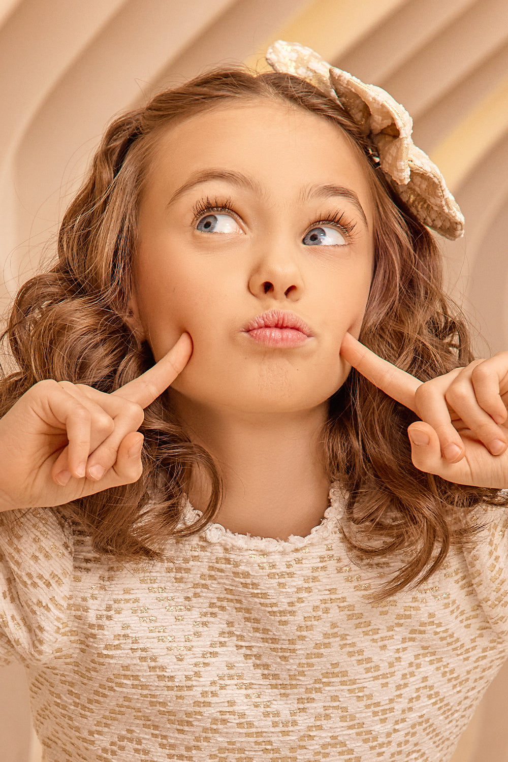 This off-white and gold tweed hair bow adds the perfect finishing touch to any outfit. Made from soft, textured tweed woven with delicate gold threads, it offers a subtle sparkle and a timeless, classic feel. Whether clipped into a ponytail, bun, or worn as a statement piece on loose hair, this bow brings a touch of charm and sophistication to any look. Lightweight and easy to wear, it's both stylish and comfortable — ideal for special occasions or adding a hint of glam to everyday wear. A beautiful blend of grace and sparkle, just right for your little one.