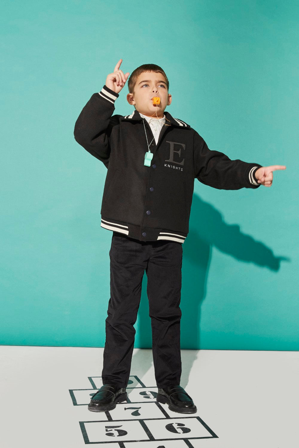 This black bomber jacket exudes a cool, effortless charm, perfect for any young trendsetter.