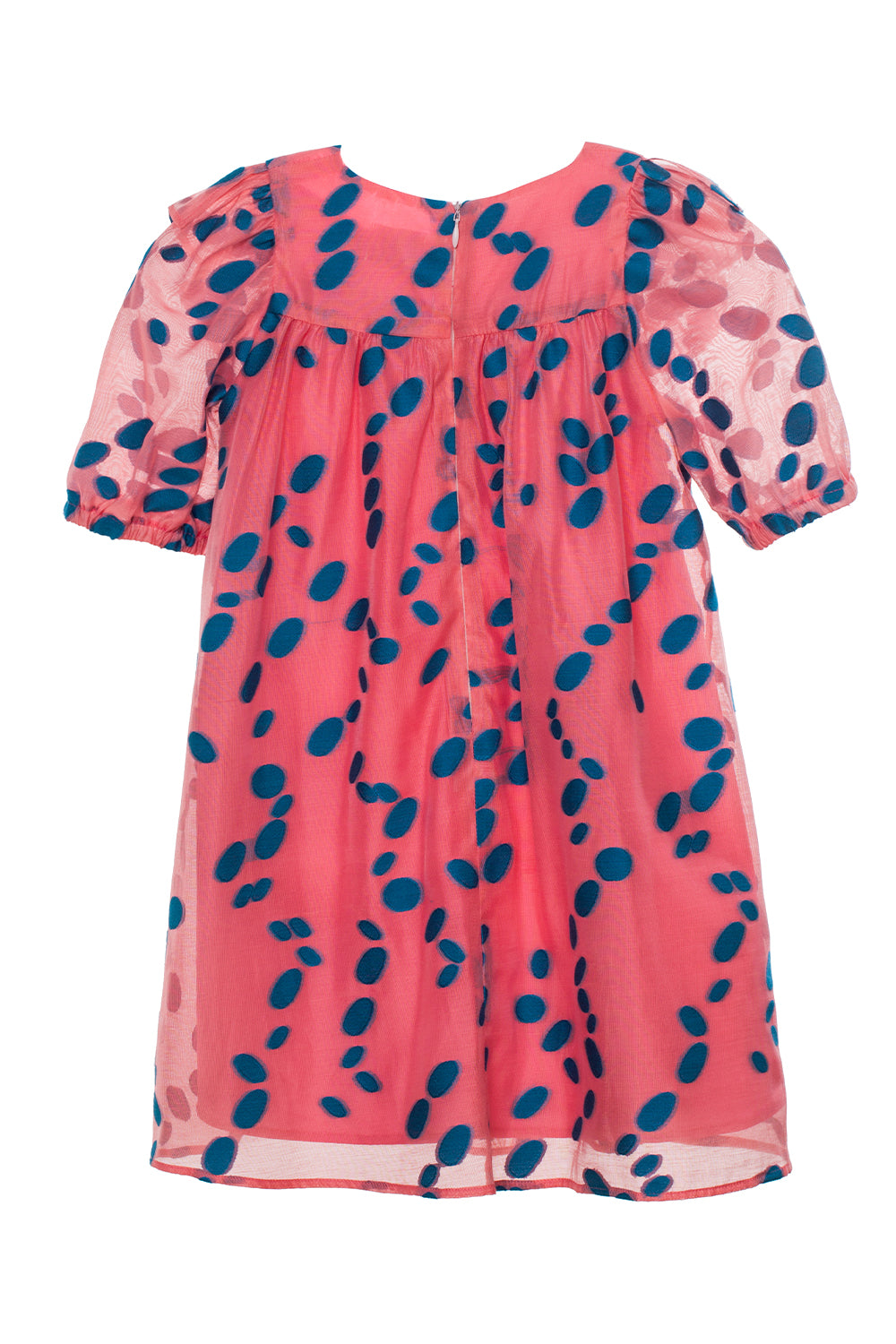 Bright, breezy, and full of charm — this coral dress is perfect for sunny days and happy moments. Crafted from lightweight viscose, it features a playful blue dot pattern that adds a fun splash of color. Soft and flowy with a comfortable fit, it's ideal for everyday adventures, family outings, or weekend fun. A sweet and stylish piece your little one will love to twirl in!