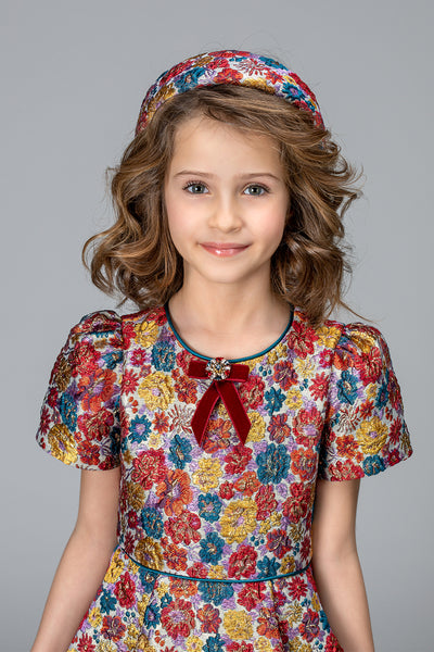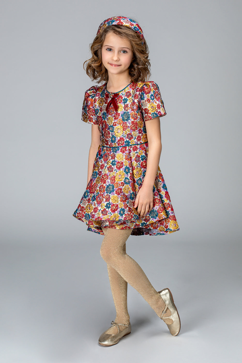 Vibrant and fashion-forward, this shimmering jacquard dress is designed to make a statement. Featuring a bold mix of red, blue, and yellow woven into a rich, textured fabric, it catches the light beautifully with every movement. The unique asymmetrical cut adds a modern twist to the classic silhouette, while the soft lining ensures comfort throughout the day. Perfect for parties, special events, or anytime she wants to shine with confidence and style.