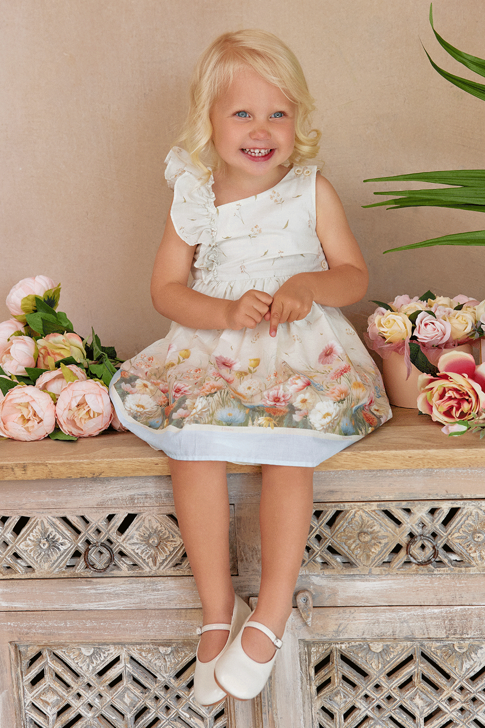 The voluminous ruffle trim adds beautiful movement and a unique artisanal touch to the silhouette. It feels wonderfully soft against the skin, ensuring all-day comfort for your little one.