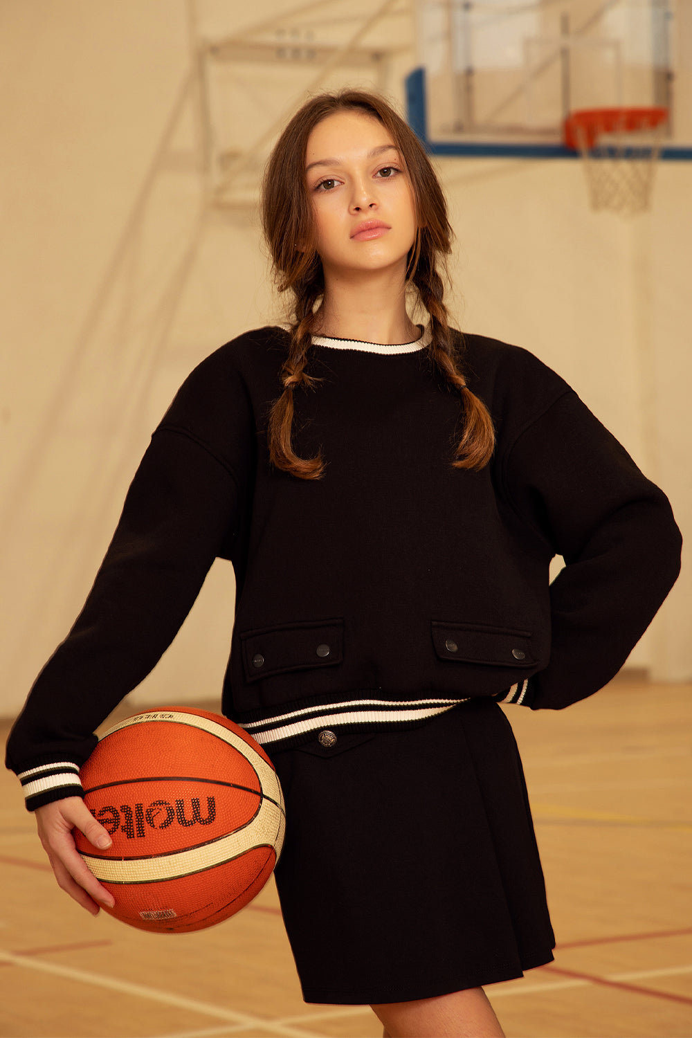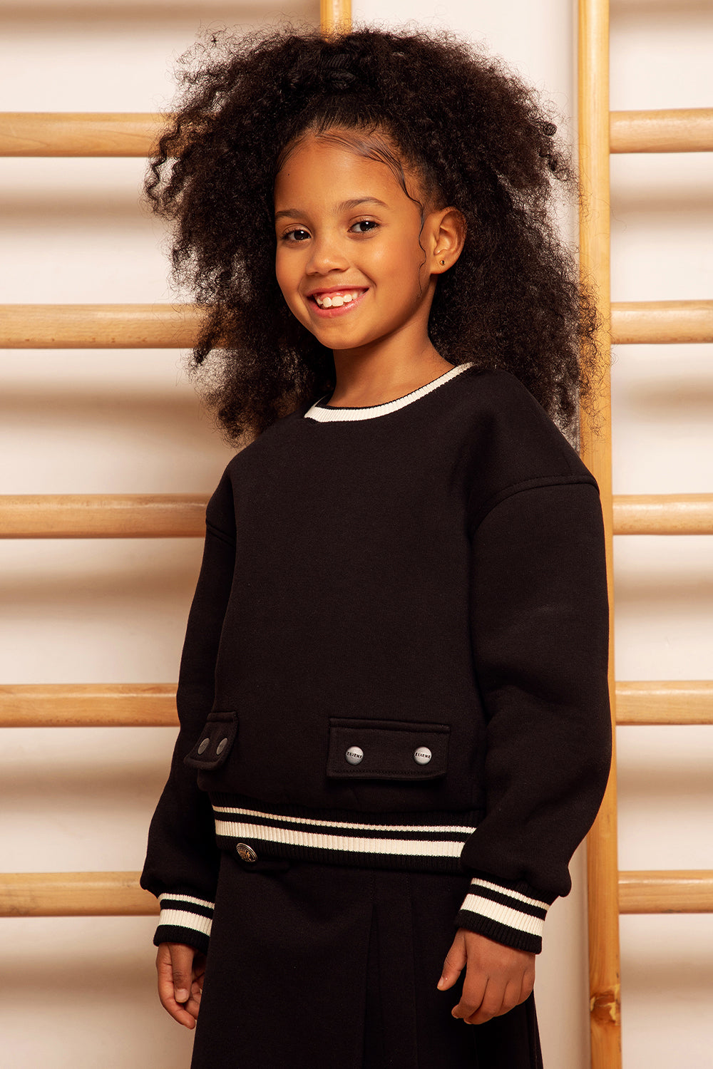 A classic black sweatshirt crafted from soft, comfortable fabric with a relaxed fit. This versatile piece features ribbed cuffs and a ribbed hem for a snug, cozy feel, making it an essential for casual, everyday wear. Perfect for layering or wearing alone, this sweatshirt is a timeless addition to any wardrobe, offering both style and comfort.