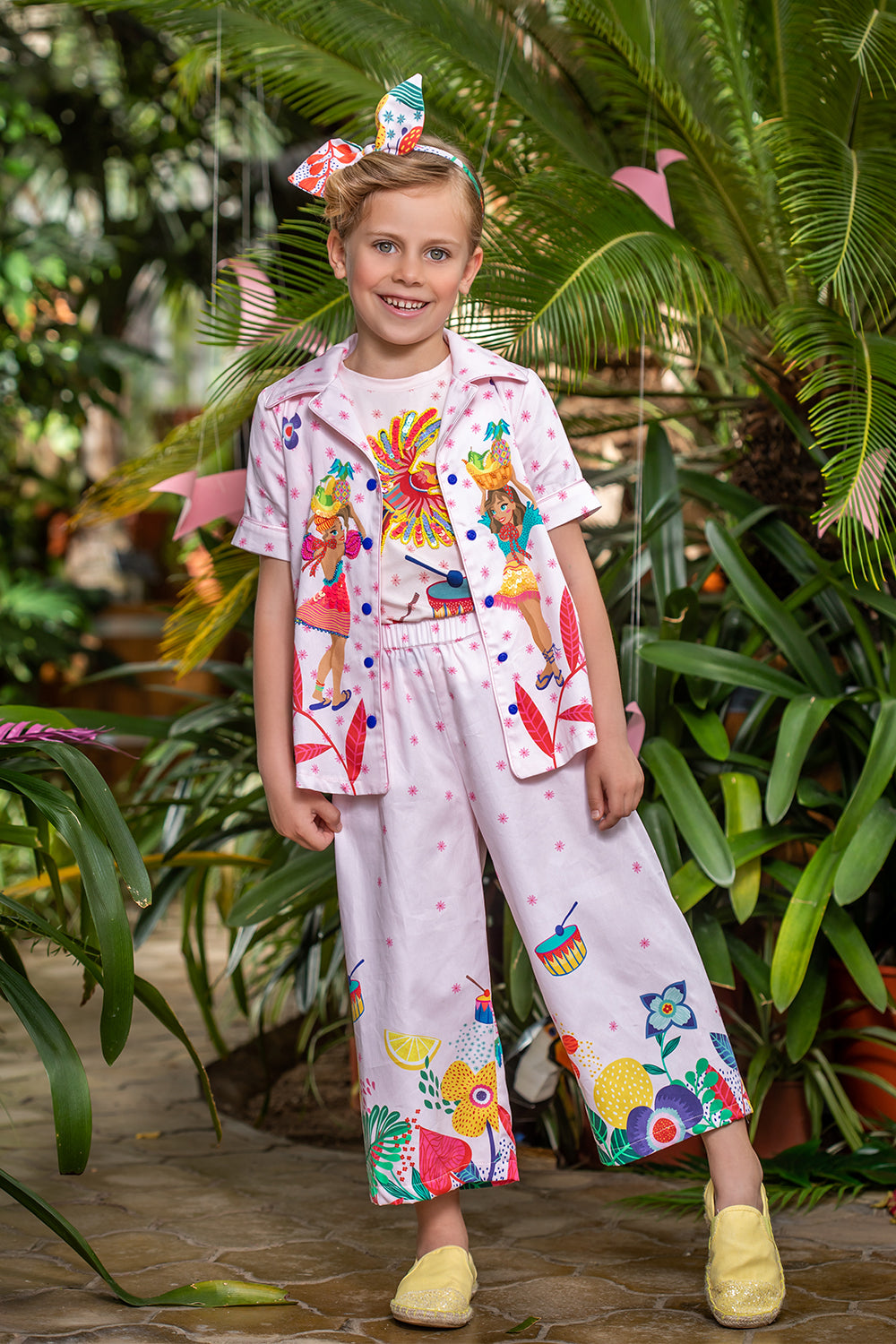 Delicate, dreamy, and full of charm — our light pink cotton Rio set is a celebration of playful elegance. Featuring an adorable all-over print of girls and tiny blossoms, this soft cotton ensemble is thoughtfully designed for all-day comfort. Hand-embellished accents add a subtle sparkle, making it extra special for outings, playdates, or festive moments. With its gentle hues and whimsical details, this set brings a sweet Rio vibe to every step she takes.