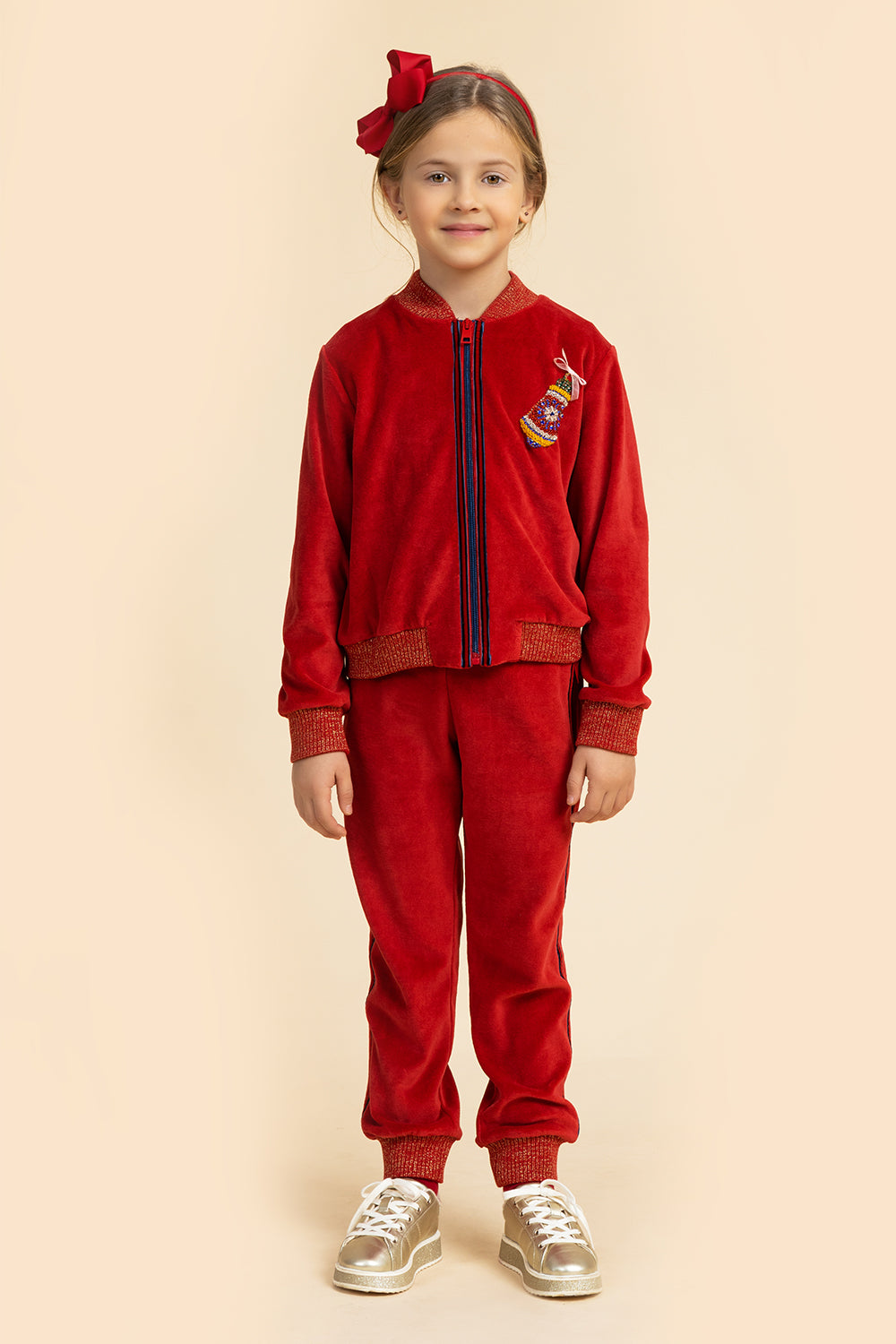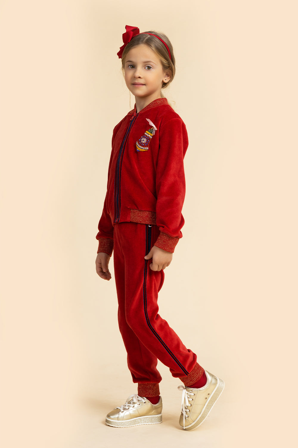 This red cotton velvet tracksuit seamlessly blends comfort with sophistication. The rich, velvety fabric offers a plush, luxurious feel, while the bold red color makes a striking statement. The tracksuit is adorned with exquisite handmade embroidery, adding a unique and personalized touch to the classic design. The detailed embroidery enhances the tracksuit’s visual appeal, making it suitable for both relaxed days and stylish outings. This combination of elegance and ease ensures you stay comfortable while looking effortlessly chic.