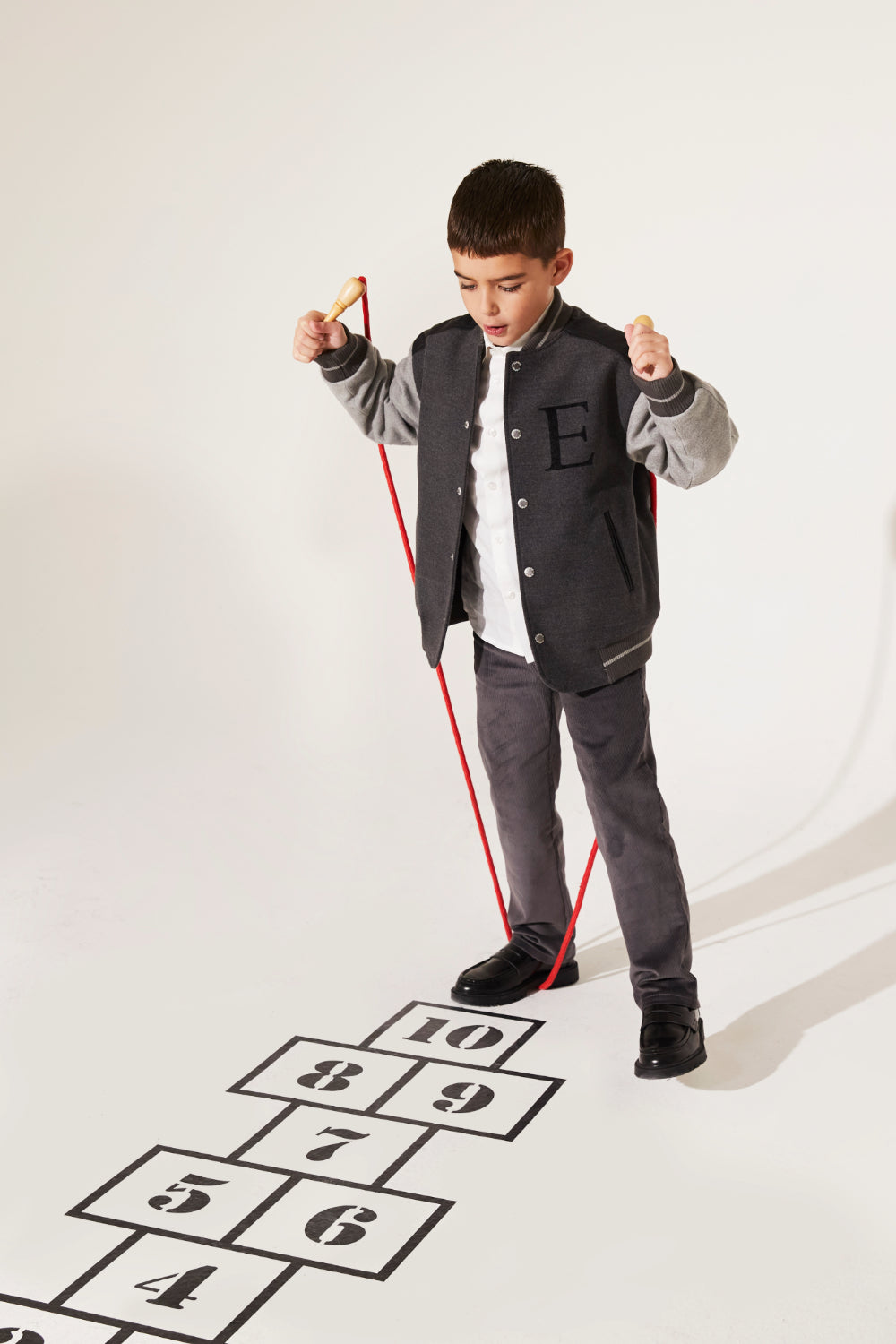 Crafted from premium corduroy, these gray trousers combine timeless schoolwear style with luxury design.